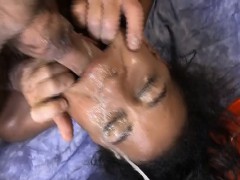 Black Ghetto Trash Gagged And Face Fucked By Two White Guys