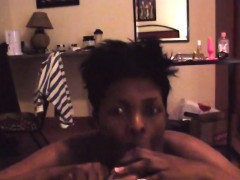 Sexy black BBW gives her buddy a wonderful blowjob before