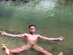 Brown soldier strips naked by the stream