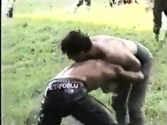 Outdoor muscled hunks enjoy bareback anal after rimming