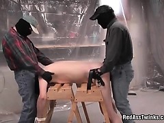 Two kinky maksed dudes fuck one innocent tied guy up the