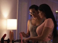 Busty milf lesbians play with strapon
