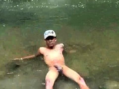 Hot trooper goes for a dip in the stream